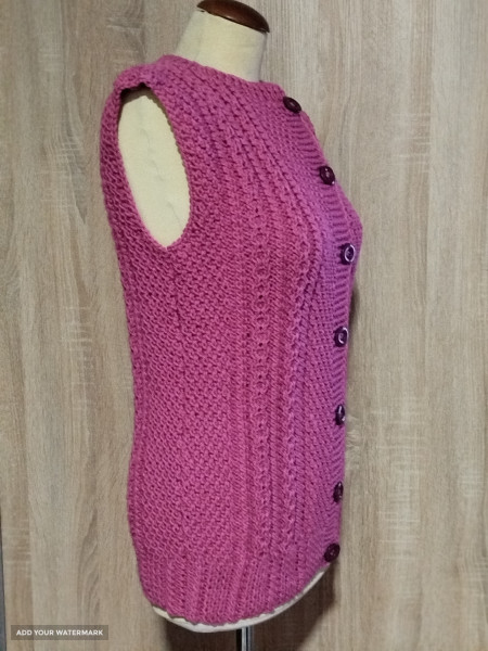 Pletena vesta ,zapínanie na 5 gombíkov objem hrude:96 cm dlžka:65 cm Veľkosť: 40 - 42