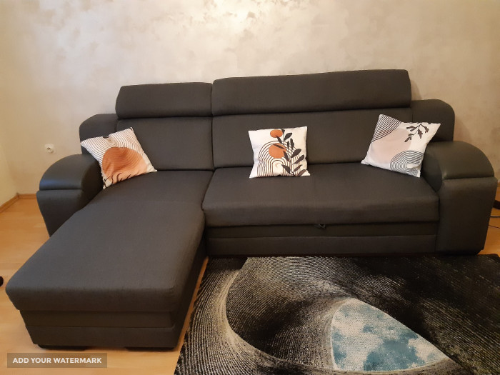 Predám rohovú sedaciu súpravu v tvare L šedej farby, rozkladaciu a s úložným priestorom. Opierky na hlavu sú polohovateľné. Rozmery 255x165x95.