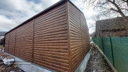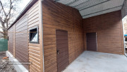 prístrešok 3x7m v ktorom je vsadena miestnosť 3x2m s dverami.