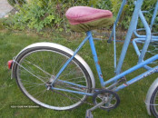 Predám starší dámsky bicykel Eska, modrá, kolesá 26, páčkové brzdy (predná aj zadná), nálezový stav. Košík, ktorý zvládne bežný nákup, praktický stojan, bez prehadzovačky. Odrazky na kolesách, hliníkové blatníky, má dynamo a svetlo. Aktuálne fotky pošlem do mailu. Volať 0945448483. Pevná cena 15€. Neposielam kuriérom. Osobný odber v NZ. Len volať.