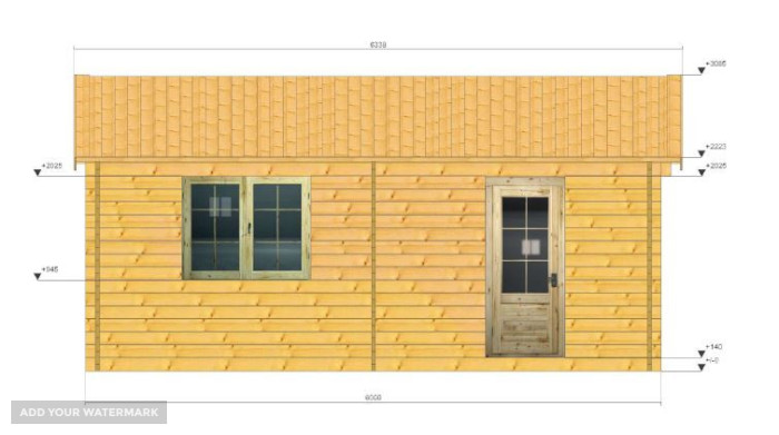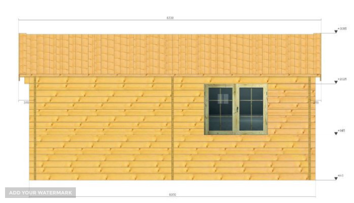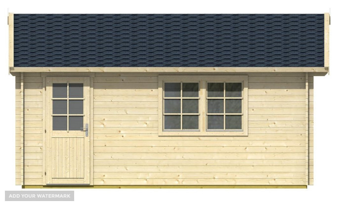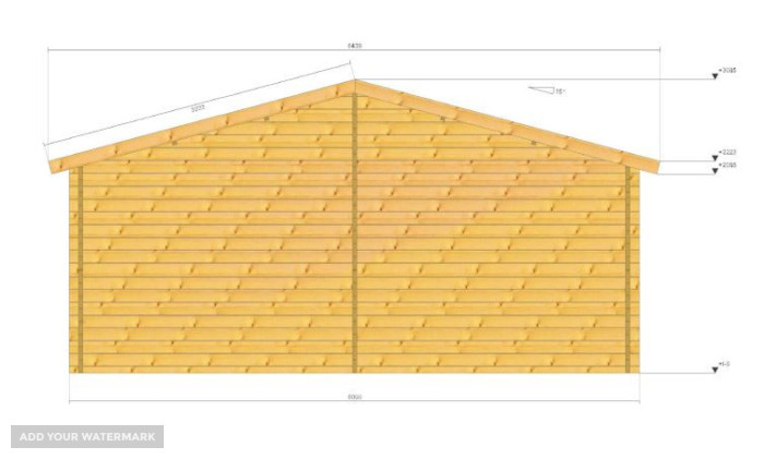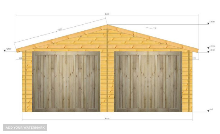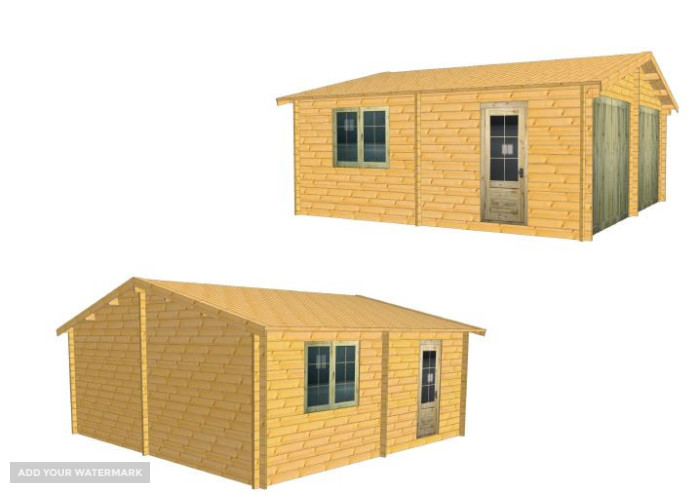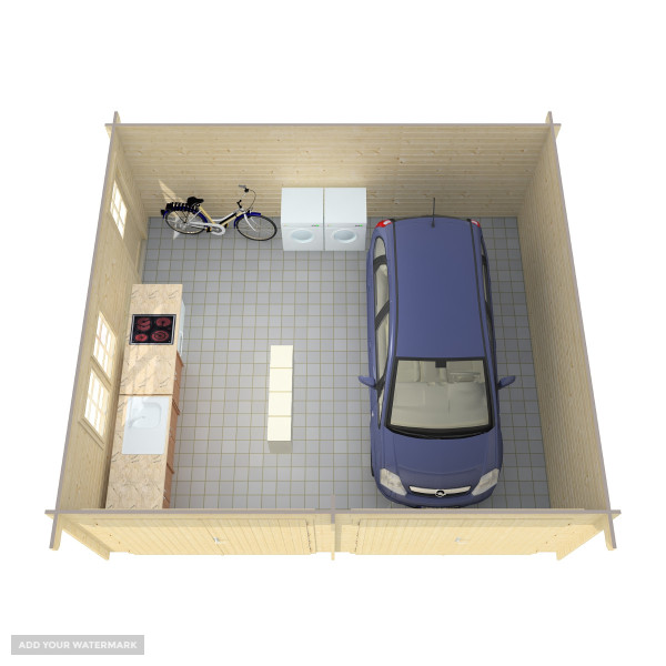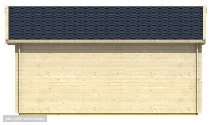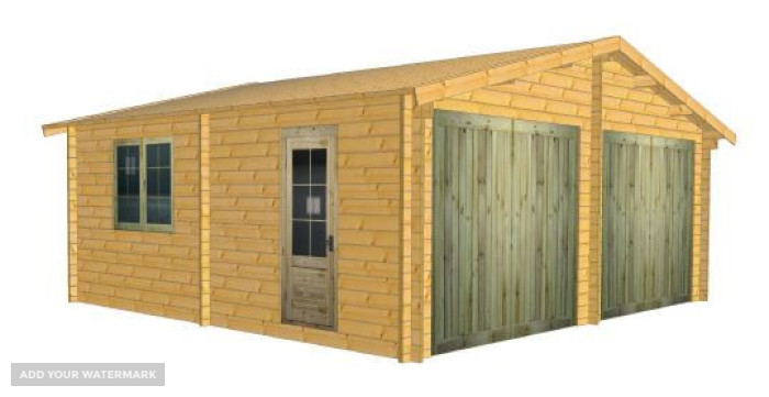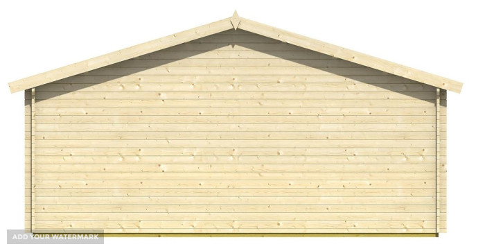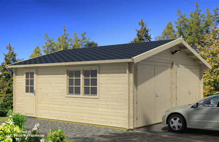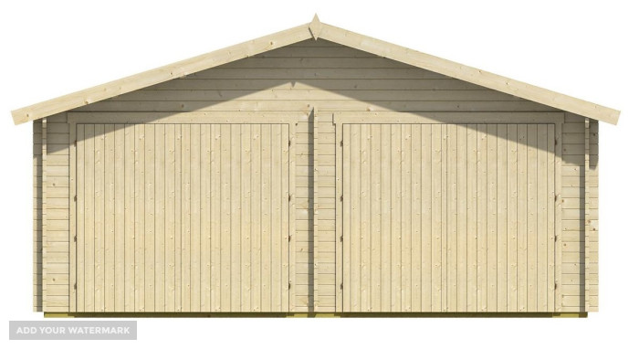Drevená zrubová garáž GA 2 pre dve autá je vyrobená z kvalitného škandinávskeho smreka a ľahko pojme dve autá. Štandardné steny garáže sú vyrobené z masívnych smrekových kmeňov s hrúbkou 40 mm. Garáž je možné postaviť z kmeňov s hrúbkou 58 mm alebo 70 mm (za príplatok). Symetrická sedlová strecha má plochu približne 38 m², hrúbku 18 mm a sklon 17 stupňov. Garáž je postavená na tlakovo impregnovaných podlahových nosníkoch s rozmermi 28x55 mm. Predná stena má dve veľké vstupné brány s rozmermi 237x195 cm. Na ľavej strane budovy sa nachádzajú čiastočne presklené vstupné dvere a dvojité výklopné a otváravé okno, ktoré poskytujú dostatok prirodzeného svetla. Interiér je možné nakonfigurovať ako garáž pre dve autá alebo rozdeliť na polovicu ako technickú miestnosť.